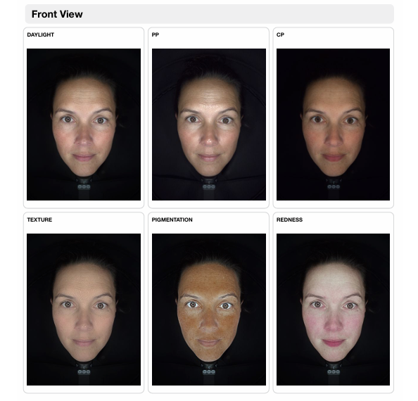 The facial imaging allows us to evaluate overall skin health, including tone, texture, congestion, pigmentation, and signs of ageing.